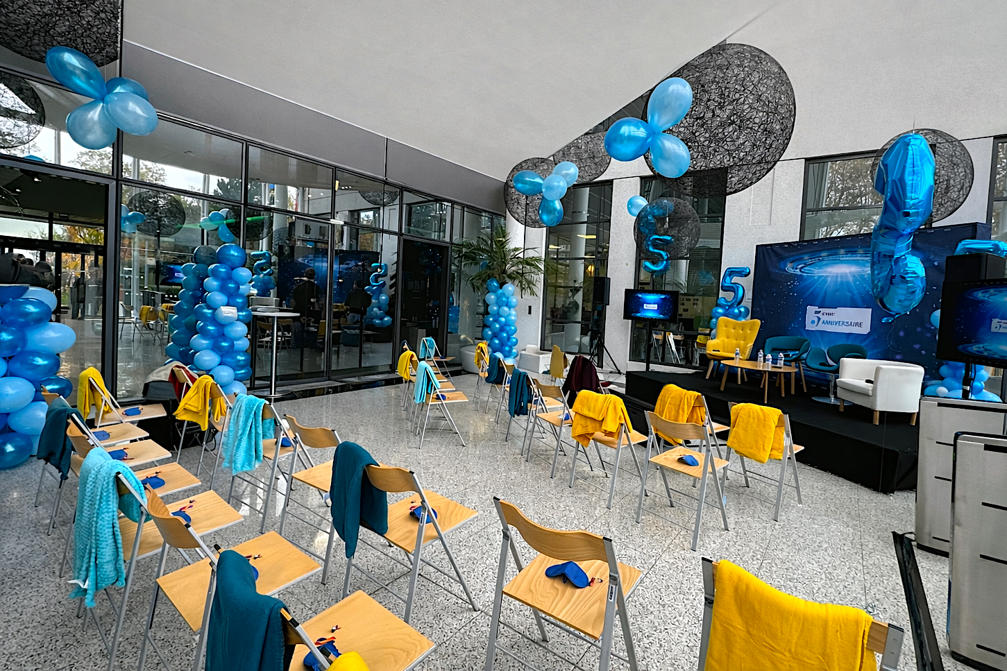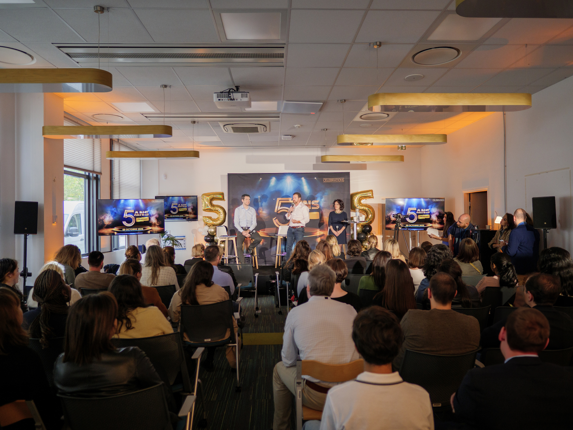 Laboratoire pharmaceutique - Evénement interne - Anniversaire produit - Paris 2025 Scénographie thématique "Anniversaire 5 ans" pour 80 collaborateurs : mise en scène et décoration sur mesure, pâtisseries personnalisées et shooting photo professionnel.