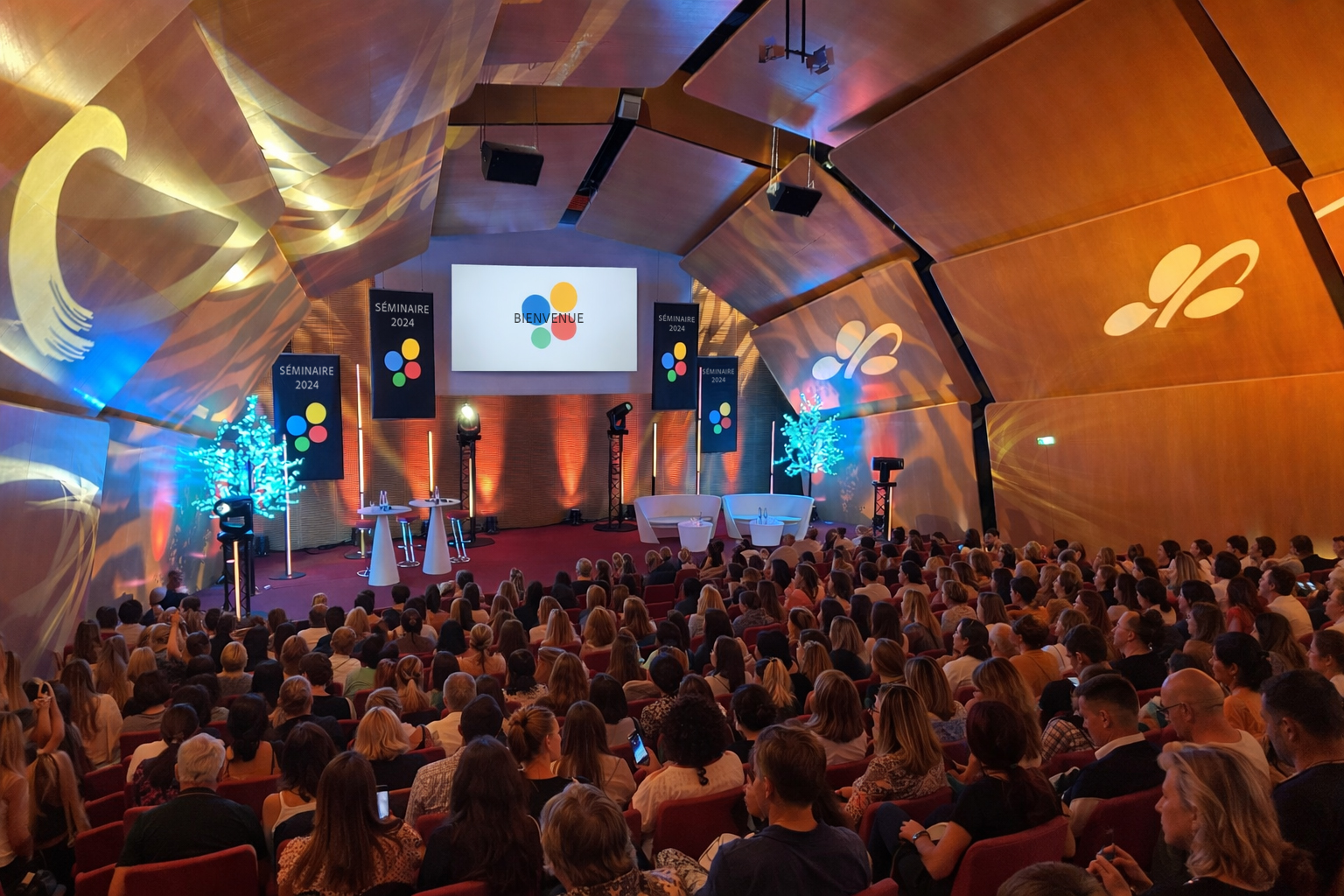 Laboratoire pharmaceutique - Séminaire 2024 - LYON Organisation d'un séminaire d'entreprise et scénographie thématique "Golden paillettes" pour 250 collaborateurs : création graphique et vidéo, décoration sur mesure, dispositif technique et soutien logistique sur 5 jours. **Projets confidentiels : l'anonymat de nos clients du secteur de la santé est préservé conformément à nos engagements contractuels.**